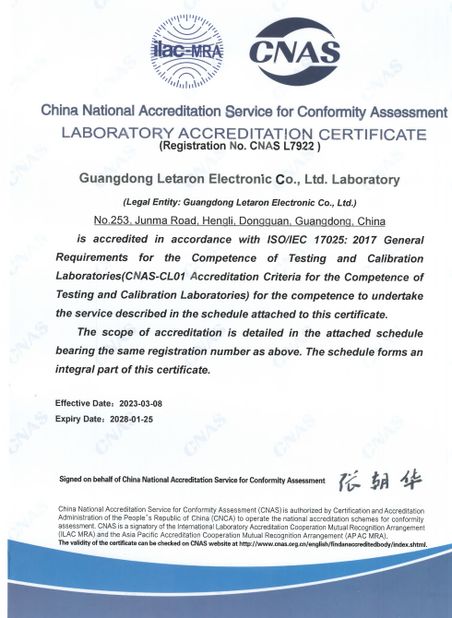 レタロンは高品質の技術研究センターを建設し,国内外の権威ある認証機関との安定した協力関係を確立しました上流および下流の企業に 一点でのテストと認証サービスを提供できる2021年には,産業情報技術省によって,国家品質インフラ (NQI) のワンストップサービスプラットフォームとして評価されました.レタロンにとってユニークな競争優位性となりました.